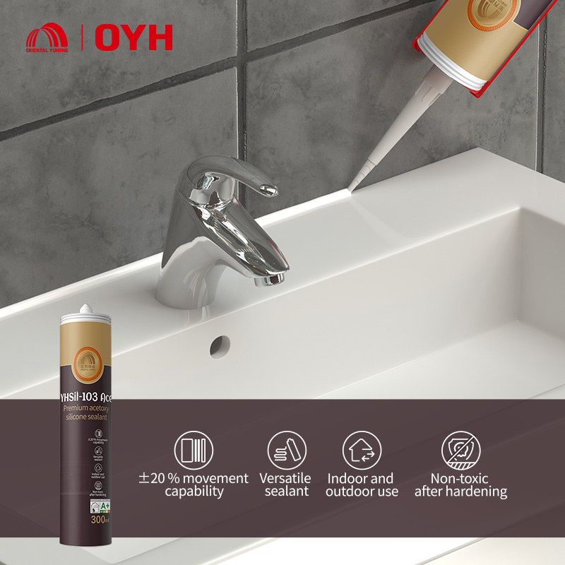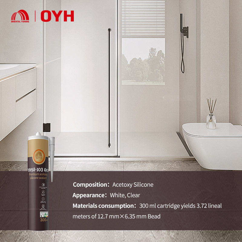 YHSil-103 Ace is a one-component, acid-curing and easy-to-apply waterproofing sealant for buildings. It is suitable for bonding and sealing various glass works, cabinets, display cases, advertising boards, and signboards. It features fast curing, high elasticity, high bonding strength, and high weather resistance and can firmly adhere to most building materials without prime coating.