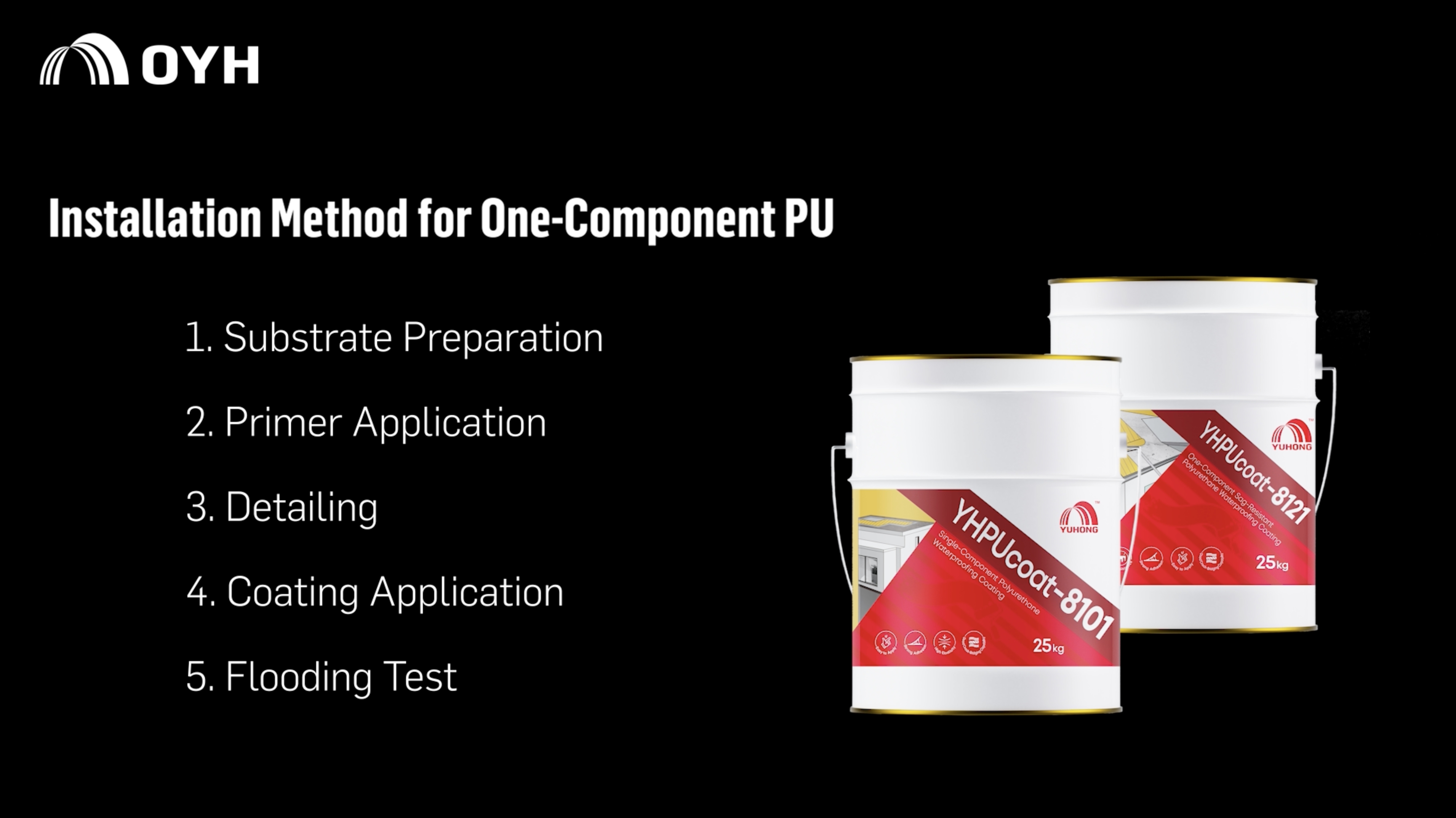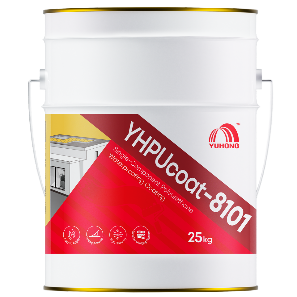 YHPUcoat-8101 is a single-component, cold-applied, moisture-cured aromatic polyurethane waterproofing membrane. It cures to form a seamless, elastic, moisture resistant, and durable waterproofing film.